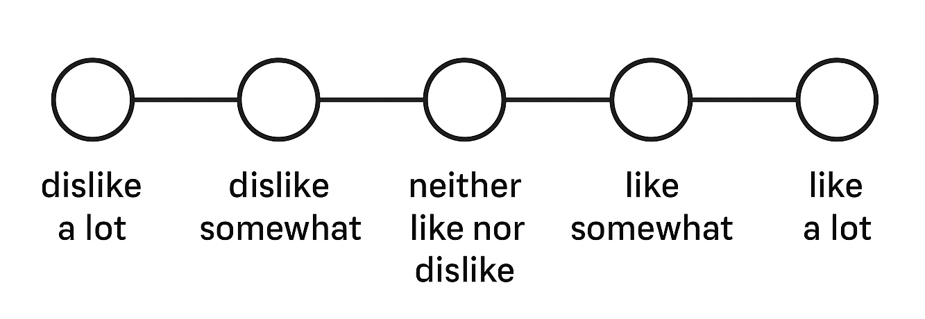 I think of a linear scale, the kind you see in so many surveys, such as this: